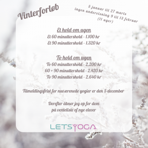 Nuværende yoga elever har fortrinsret og tilmelding for dem på venteliste og nye kunde åbner efter den 5. december.